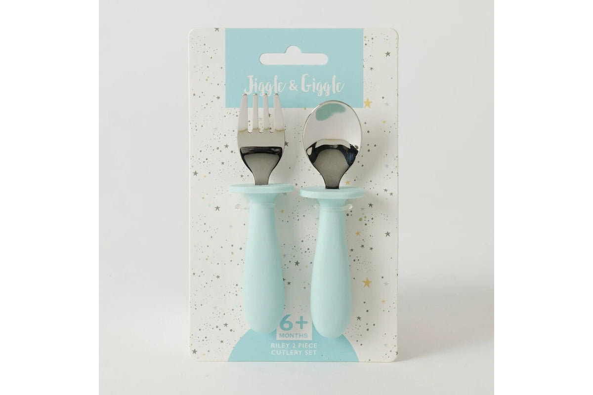 2pc Jiggle & Giggle Riley Cutlery Dishwasher-safe Toddler Dinnerware (Blue)