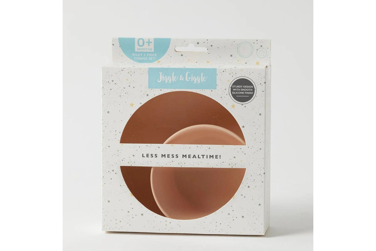 2pc Jiggle & Giggle Riley Silicone Dining Baby/Toddler Dinnerware (Peach)