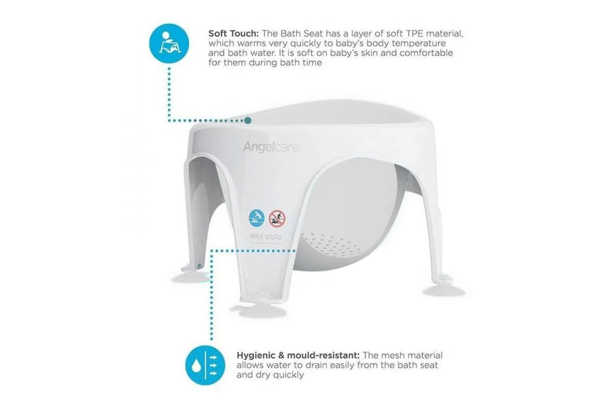 Parents have the choice of bathing or showering their little one, secure in the knowledge the Baby Bath Seat will help to look after baby. It’s hygienic, mould-resistant plastic comes in a range of fabulous colours, perfect to match to any stylish bathroom decor. With babies the world over graduating to the Baby Bath Seat from their Bath Supports around 6 months, it’s easy to see why bath time is the best time with Angelcare. Makes bath time fun and comfortable.
