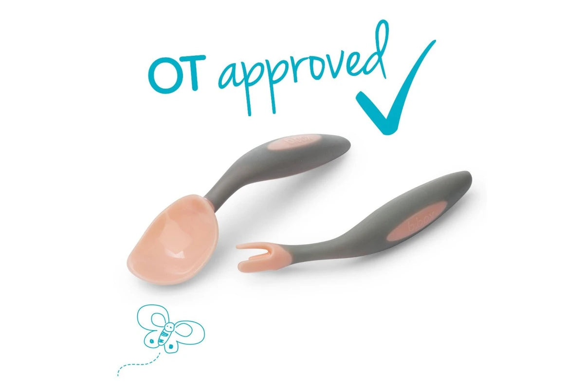 Our cutlery set has been designed with a leading paediatric occupational therapist (OT) as the ideal toolkit for tots who are ready to self feed. The unique spoon shape acts as shovel helping little ones to scoop up their food, even with a flat plate.