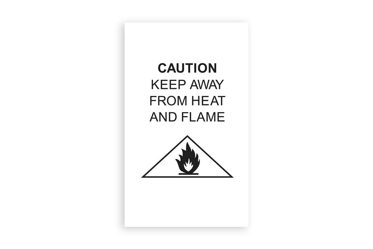 FIRE HAZARD LABEL according to AS/NZS 1249:2014: CAUTION Keep away from heat and flame.